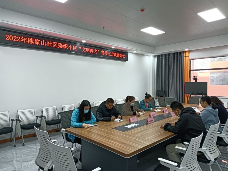 本网讯(陈蔚姣、侯佩佩)为树立文明养犬新风尚,共同营造整洁有序、安全和谐的市容市貌,11月24日,熊家山社区染织小区召开“文明养犬”宣传工作五方联席会。