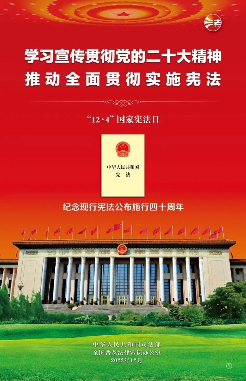 2022年12月4日是我国第九个国家宪法日,也是我国现行宪法公布施行四十周年。今年“宪法宣传周“主题为“学习宣传贯彻党的二十大精神 推动全面贯彻实施宪法”。