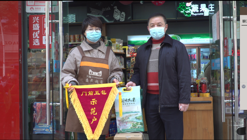 五包示范户项爱梅说:“今天我评了五包示范户,很荣幸,平时有纸屑或者烟头,我都会把他清理掉,然后门前有乱停乱放的,我会把它摆整齐,跟别人说不要乱停。”
