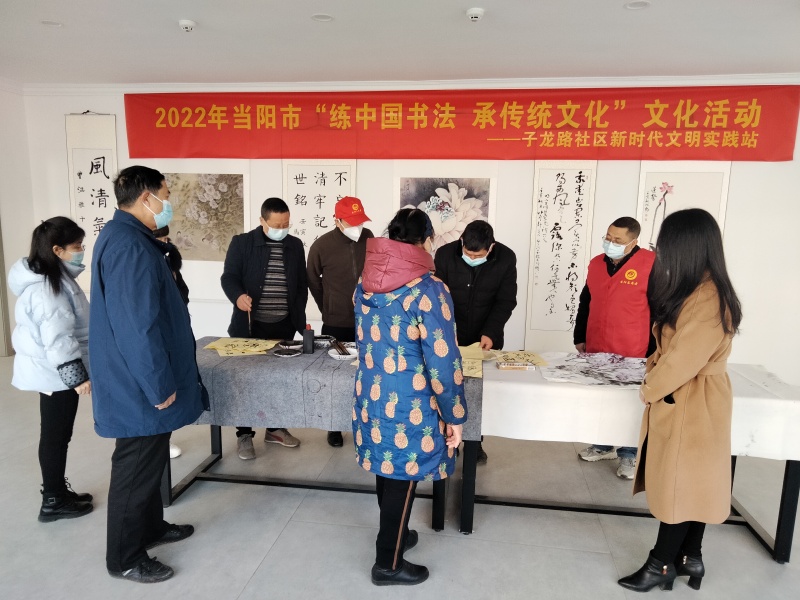12月18日,子龙路社区新时代文明实践站线上线下同步开展“练中国书法 承传统文化”文化活动。活动中,志愿者介绍了笔墨纸砚和毛笔字的起源、写毛笔字的意义和好处。随后,详细讲述了书写姿势、运笔方法、书写过程中的注意事项等知识,又为居民们亲手示范毛笔字的书写方法,如何执笔、行笔、落笔,并要求大家认真观察,多次强调笔一定要拿直不能歪斜。此次活动,让社区居民在学习毛笔字的同时,体验到中国书法所蕴含的精神。进一步激发了他们对书法的学习兴趣,传承传统文化的魅力,让社区文化氛围更加浓厚。