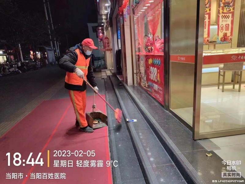 环卫工人刘忠芳说道:“我们每天4:30上班把所负责路段打扫干净,让大家过一个干净、祥和的元宵节,也希望广大的市民积极配合我们工作,为建设信义当阳做出贡献。”