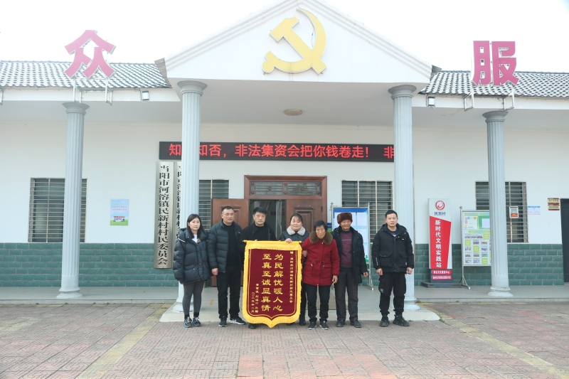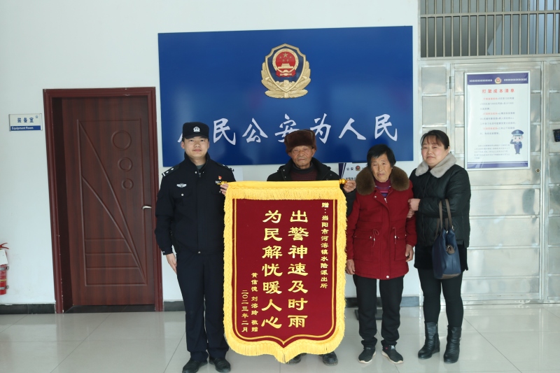 2月6日,王先群的家属特意带着锦旗前往河溶镇派出所与民新村村委会,代表老人表达全家人的感激之情。