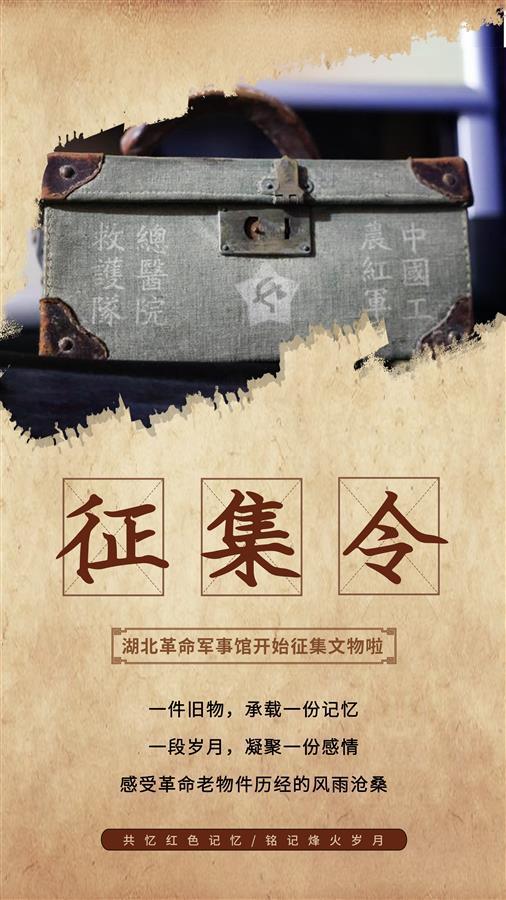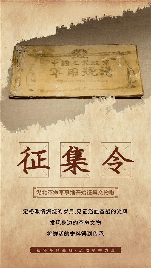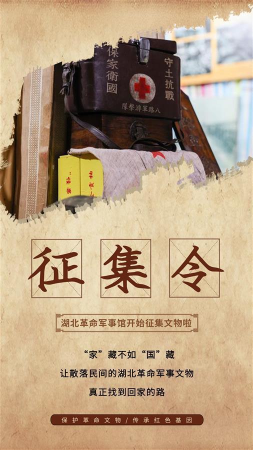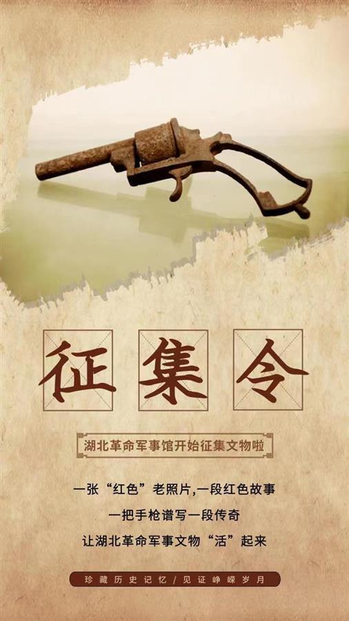为贯彻落实习近平总书记关于传承红色基因的重要指示精神,高标准做好湖北革命军事馆筹建工作,集中展示中国共产党在湖北领导武装斗争史、新中国国防建设史和新时代强军兴军伟大实践,延伸展示军事历史文化、兵要地志和武器装备,精心打造传承红色基因、宣扬强军成就、普及国防教育的红色殿堂,根据建馆工作需要,湖北革命军事博物馆现面向社会各界公开征集革命文物(实物)史料。