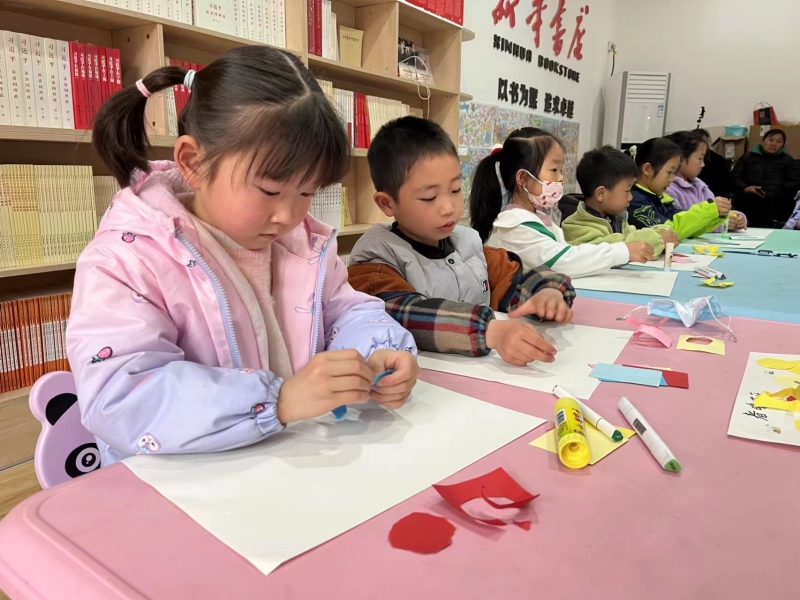 活动中,新华书店工作人员引导小朋友们一起阅读绘本《一园青菜成了精》,通过一个个生动的故事,让大家回归自然,了解各类蔬菜的特点,进一步培养了青少年儿童“爱读书、读好书、善读书”的好习惯。在创意美术手工环节,工作人员带领大家一起制作精美的手工创作,通过撕、贴、涂、画等操作,锻炼了小朋友们的手眼协调能力和对颜色的认知、搭配。此次活动的开展得到了家长们的一致好评。
