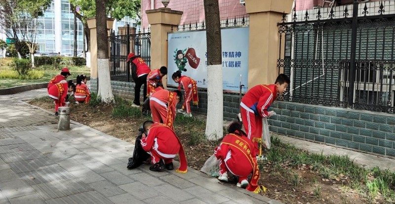 本网讯(吕达力、郑海英)4月15日,当阳市实验小学小蜜蜂志愿服务队在环城南路开展学雷锋志愿服务活动。