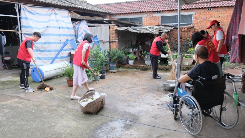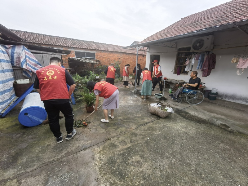 活动过程中,志愿者们扫地、拖地、收拾庭院,随后与曹林进行了亲切交谈,询问身体、生活近况。