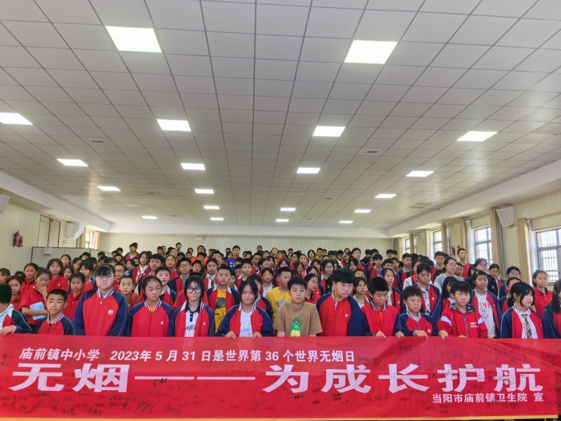 本网讯(杨清华、石光凯)5月31日,庙前镇中小学联合该镇卫生院开展“无烟——为成长护航”主题宣传活动。