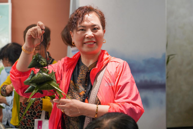 活动现场,湖畔餐厅准备了粽叶、糯米、红枣、蛋黄、瘦肉、豆沙等包粽子的材料,只见居民李阿姨拿起一张粽叶,一卷一翻,便形成了一个空心的圆锥形,然后填上糯米,中间放上金灿灿的蛋黄,再铺上一层糯米,卷叶、封口、捆线,一个漂亮的粽子就包好了;一旁的小姐姐显然对“包粽子”有自己独特的想法,只见她把粽子包成了“等腰三角形”“长筒形”,在一片欢声笑语中,居民们感受了节日的氛围,也互相送上了节日祝福。