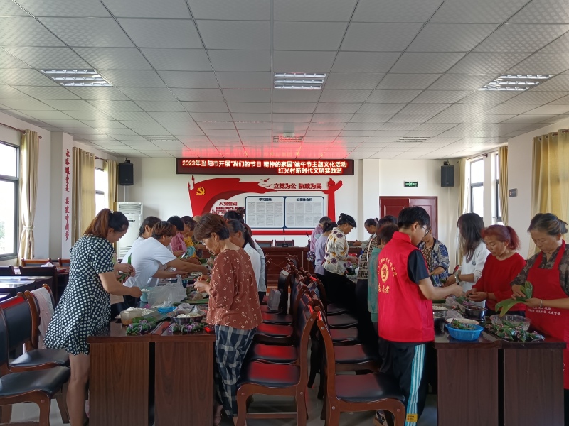 6月20日,红光村新时代文明实践站组织村民集体包粽子。活动前,志愿者为现场村民们科普了端午节由来,深情讲述了屈原的爱国故事。“年年过端午,还真不知道端午的由来。今年过端午,听了一个故事还得了一包粽子。”活动结束后,村民们笑着说道。