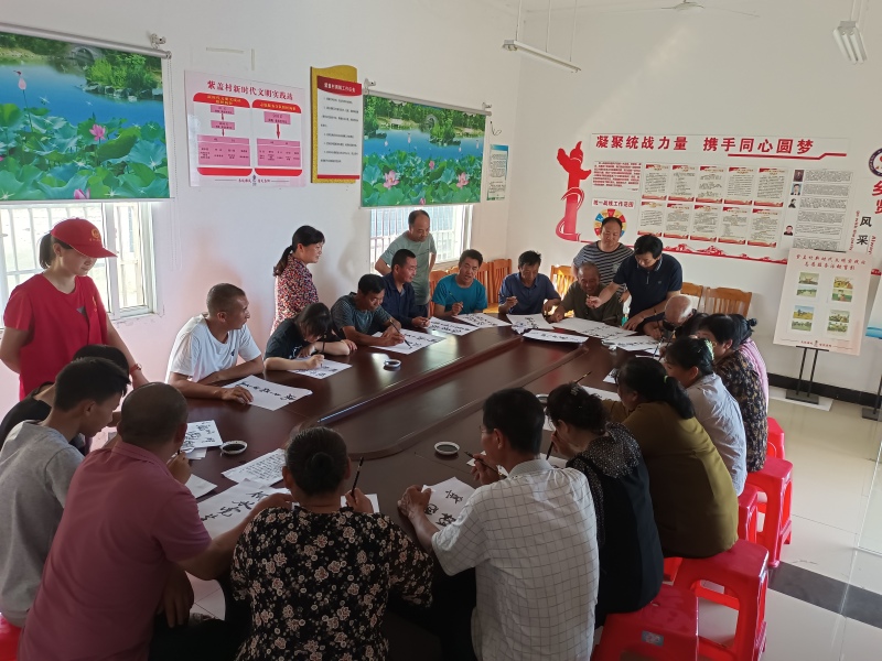 除了包粽子活动,紫盖村和龙台村新时代文明实践站还组织村民们开展端午写毛笔字活动,邻里间以浓墨书香共话端午安康。