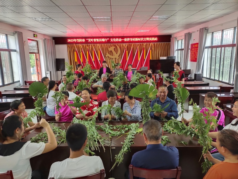 普济寺村新时代文明实践站开展“艾叶香里识端午”文化活动。活动中,工作人员将事先准备好的艾草叶分发给村民,一边示范操作艾叶花束的制作方法,一边讲解普及端午节挂艾草习俗的来历、功效及悬挂注意事项。村民张阿姨开心地说:“今天不仅收获了美美的艾叶花,还学到了有关艾草的传统文化知识,真是太有意义了!”