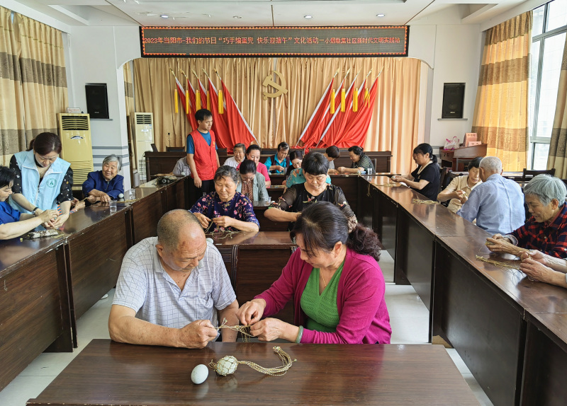 “你知道端午节有哪些习俗吗?““有人知道挂蛋兜的来历吗......”6月19日,小烟墩集社区新时代文明实践站开展“巧手编蛋兜 快乐迎端午”文化活动,带领居民讲端午故事,品传统文化。随后进入手工制作环节,居民们在老师的指导下,捻丝线、拉彩绳、缠绕、放入咸蛋、打结......经过一番忙碌,一个个精巧的蛋兜呈现眼前,大家纷纷拍照留念,喜悦之情溢于言表。社区还制作了小视频通过微信公众号进行展播。