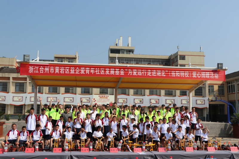 本网讯(曾凡荣)6月26日,经当阳人民政府、市教育局的积极沟通,浙江台州市黄岩区青年企业家协会代表一行走进湖北省当阳市特殊教育学校,开展爱心捐赠活动。在捐赠活动中,孩子们收到自己喜爱的衣服、书包、生活用品、平衡车、三轮车......个个欢呼雀跃。