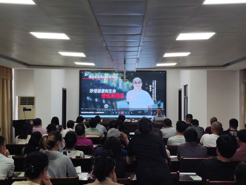 市社区矫正管理局特邀市禁毒大队赵警官为社区矫正对象进行防范毒品知识专题授课。活动中,赵警官为大家播放并讲解了禁毒宣传视频,社区矫正对象们不时与身边人交流表示赞同。