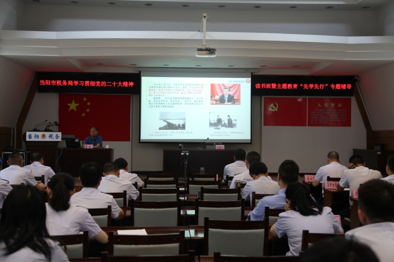 会议邀请市委党校相关负责人作学习贯彻党的二十大精神宣讲暨“先学先行”专题辅导,以《学习领悟伟大抗美援朝精神》为题,带领全体党员从抗美援朝历史背景、抗美援朝战争历程、对抗美援朝的认识和评价、精神内涵和传承弘扬四个方面进行全面学习,通过“视频+ppt”的形式为全体税务干部上了一堂生动的党史课程。