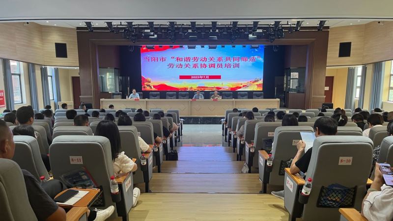 本网讯(李昕婷)7月11日,由市总工会、市人社局联合举办当阳市“和谐劳动关系共同缔造”劳动关系协调员培训班开班,市协调劳动关系三方委员会成员单位、镇(街道)、市直重点企业、劳务派遣企业、大型社会组织等单位从事劳动关系协调工作的人员近200人参加。