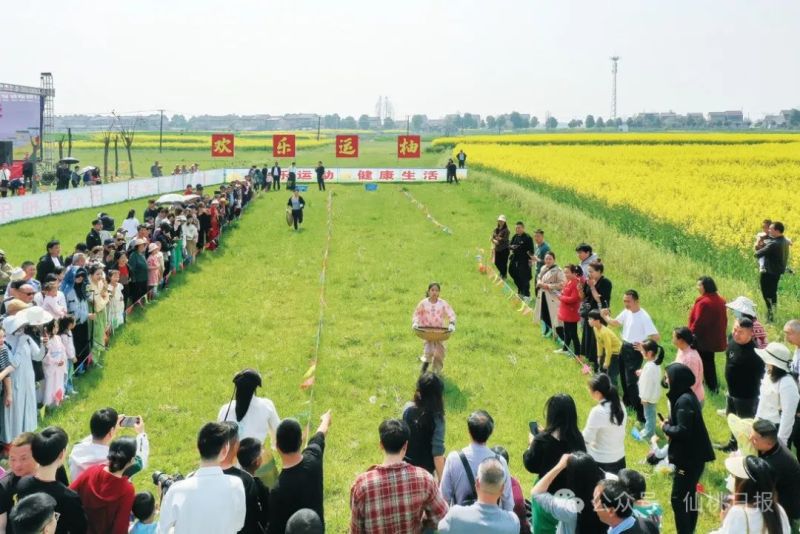 最是一年春好处。漫步郑场渔泛古村,微风徐徐,绿树繁花不时跃入眼帘。深呼吸时,顿觉心旷神怡。3月22日,2025郑场文化旅游消费季系列主题活动携春风如约而至。走进“渔泛稻田”,一片生机盎然。金黄的油菜花海,随风摇曳,令人陶醉。市民游客纷纷登上观景台,拍照打卡、录制视频,分享此刻美景。仙桃数名网红主播透过镜头直播着热闹场面。