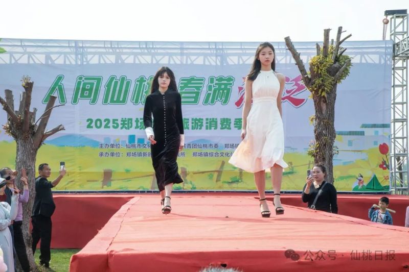 “和家人提前约好,一早就到了,很治愈也很放松。”从城区驱车前来的市民陈丽颖比心摆造型,感受乡村春光。如果问春天什么最美?答案是:繁花似锦,人游景中,相映成趣。当日,郑场镇精心端出一系列精彩文娱“套餐”。一曲《威风锣鼓》的开场舞,点燃春日激情。20位模特组成的服装 T台秀成为焦点,观众们举起手机,拍下精彩瞬间。歌曲、舞蹈等节目串联,上演连台好戏。台下游客如织,尽享轻松时刻。活动现场,主题娱乐活动应接不暇,体验环节多样,多重好礼相送。
