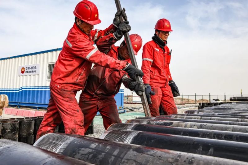 石油人在摆放即将入井的套管等钻工具。(图源:科技日报)