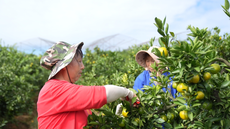 “今年柑橘收成特别好,产量比去年有明显提升,这离不开智能化水肥一体化设施的助力。” 湖北凤凰山柑桔种植专业合作社理事长王立明介绍道,目前基地农户已广泛采用智能化水肥管理系统,可根据柑橘生长需求精准供水供肥,不仅保障了果实品质——从颜色、个头到口感均实现优化,果实糖分更是达到14.5左右;产量方面,每亩田在去年基础上提升近20%,普通品种亩产可达7500斤,按当前市场价格计算,每亩增收约八九百元,切实为果农带来实惠。