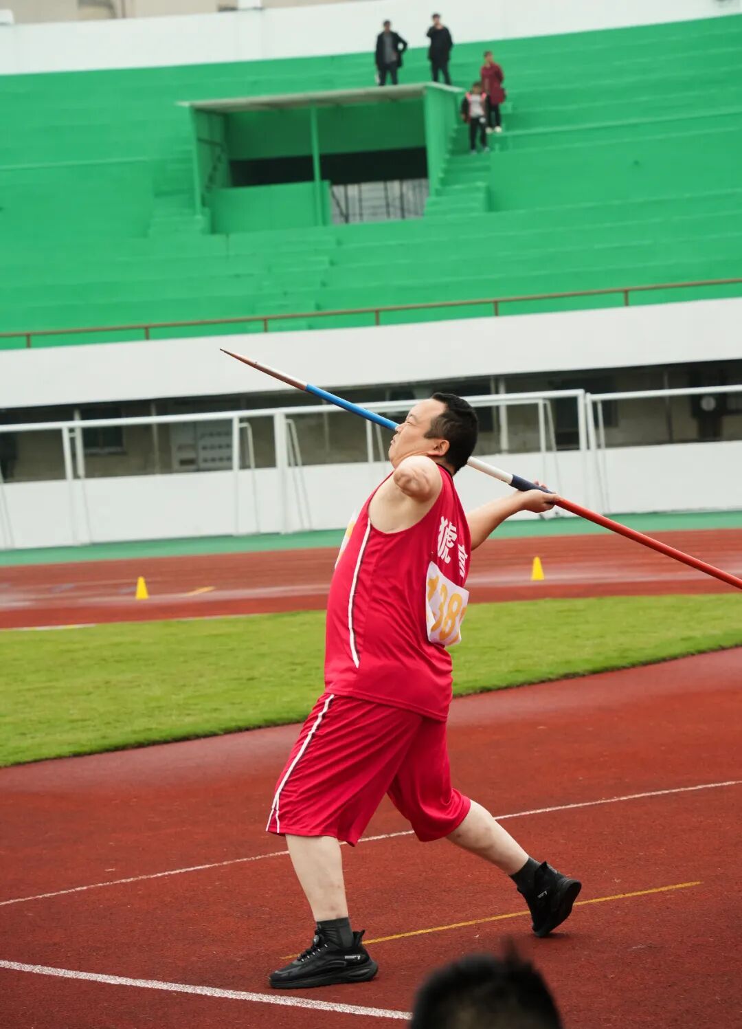 在田径项目男子 F42 标枪赛中,当阳选手张贤鹏凭借稳定发挥与出色表现,成功摘得该项目金牌,这也是本届比赛残疾人赛场产生的首枚金牌。