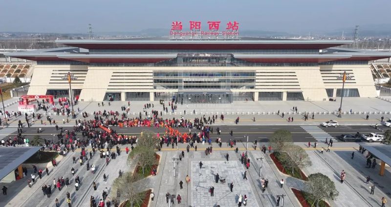 据了解,当阳西站位于荆门西至宜昌北区间,地处国家“八纵八横”两大干线——沿江高铁与呼南高铁的并线区段,此次作为随武宜高铁同步开通的新车站,当阳西站将一跃成为贯通南北、连接东西的“黄金十字路口”,无论开往长三角、成渝,还是京津冀、粤港澳,都将停靠当阳西站。
