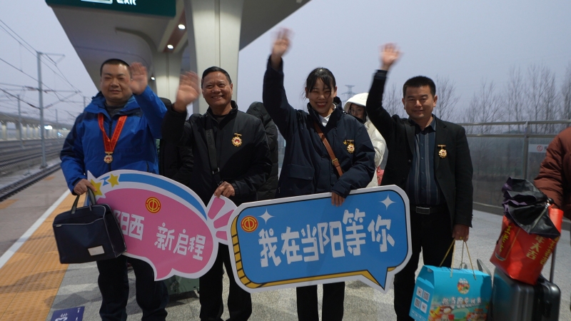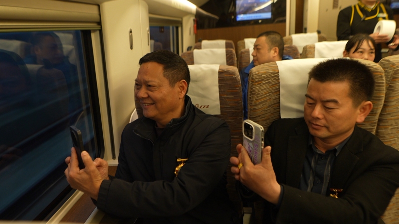 劳模代表们从当阳西站登上前往汉口的高铁列车。在飞驰的列车上,大家目睹了沿途城镇与乡村的崭新面貌,亲身感受到高铁给区域发展带来的蓬勃活力。