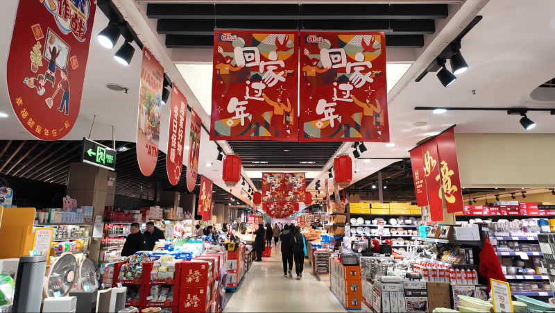 走进北山超市,新年横幅映入眼帘,红彤彤的灯笼高高挂起,干果、肉类、饮品等各类商品琳琅满目,从过年必备的餐具、干货,到带有马年元素的特色商品,一应俱全,吸引着不少市民驻足挑选、精心选购。