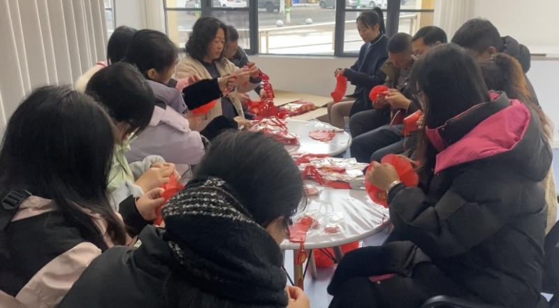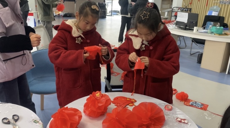 活动分为“精心制作”与“巧手布置”两个阶段。在社区活动室内,大家协作完成灯笼组装、花球制作等手工;随后前往广场,一同悬挂红灯笼、新春挂饰及“欢度佳节”大型灯饰,细致布置每一处景观。