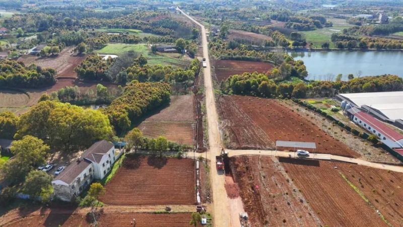 在河溶镇郭家场村与沙洋县交界处,刚开工的S342当阳市河溶至沙洋段公路改建工程正在加速推进,挖掘机正在进行路基清表作业,运输车辆往返运送土石方。据介绍,项目全长约7.6公里,起点位于河溶镇,与S253相接,终点与沙洋县董家岗交界,按双向两车道二级公路标准建设,路基宽度为8.5米,完工后,将有效串联当阳与沙洋两地路网,便利沿线群众出行和农产品销售,助力区域协同发展。项目负责人黄涛介绍:“S342沙河线已于3月20日开工建设。当前正在推进的是路基施工,计划于2026年底实现全线路基成型。项目建成后,将切实便利群众出行,提升区域交通出行效率。”